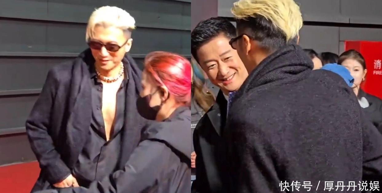 更戳人的是两人全程默契满分的互动细节。红毯相遇时,吴京率先张开双臂与谢霆锋紧紧拥抱,力道十足的拥抱搭配相视一笑,让《镖人》剧粉直呼“刀马和谛听的次元壁破了”。签名墙前,谢霆锋主动侧身配合合影,吴京则下意识抬手搭在他肩膀上,目光再次“不经意”落在对方胸肌上,这一幕被现场媒体抓拍后,迅速衍生出“京哥的眼里只有胸肌”“硬汉的审美果然一致”等热门梗。后台路透中,吴京还特意拉着想做打星的刘耀文向谢霆锋引荐,三人同框画面被网友调侃“打星传承+胸肌观赏现场”。